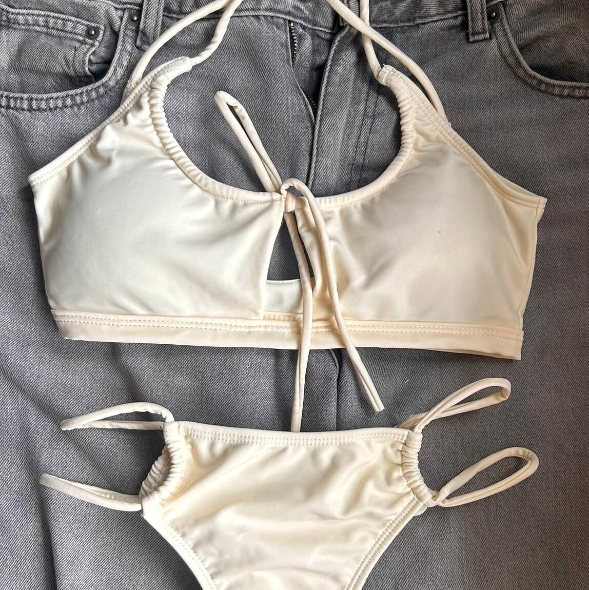 La bombacha con tiras finas dobles estiliza la silueta y suma un calce cómodo, ideal para quienes buscan un look delicado pero llamativo.